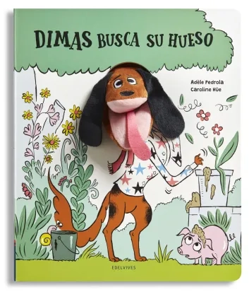 Un libro lleno de humor que incluye una divertida marioneta de dedo para jugar a dar sustos con el perro Dimas y tomarle un poco el pelo a este can un poco señorito y despistado.