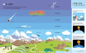 Esta pequeña enciclopedia temática, además de aportar un extenso vocabulario visual, permite descubrir cómo se forma el arco iris, de qué se compone una estrella fugaz, cómo se come en el espacio o quién fue el primer hombre que pisó la luna.