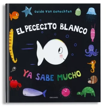El pececito blanco ha aprendido un montón de cosas: conoce los colores, sabe contar hasta diez, distingue lo que es arriba y abajo, delante y detrás… Sabe, también, lo que se les da bien a todos los papás y las mamás del mar, y distingue cómo se siente en diferentes ocasiones.