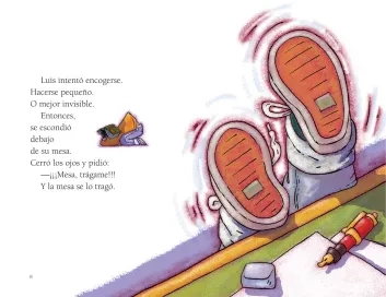 Un niño tiene que enfrentarse a un compañero de clase violento, y, ante esta situación a la que no quiere hacer frente, pide a su mesa que le trague; la mesa, efectivamente, se lo traga. Y el niño va a parar al país de las cosas que se pierden o que se olvidan. Encuentra a muchos amigos que también, como él, tuvieron miedo alguna vez, o no quisieron enfrentarse a situaciones comprometidas (como el puré de verduras que no querían comer); todos esos niños pidieron ser tragados y fueron a parar allí. Entre estos niños está, para su sorpresa, el violento compañero de clase que tanto temía.