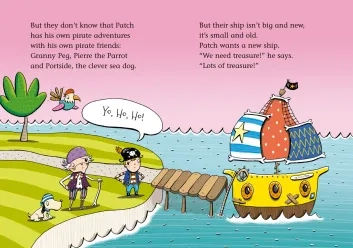Patch is the son of a pirate couple, who consider him too young to embark with them. That is why he will stay with his pirate grandmother, Granny Peg, and her pets, the dog Portside and the parrot Pierre. Together with them, they will have fun adventures at sea and face their clumsy enemies, the pirates Jones and Bones, while their parents think they are still on land. They will have fun adventures at sea and face their clumsy enemies, the pirates Jones and Bones.
