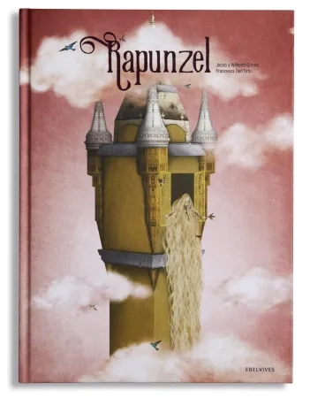 «La mujer dio a luz una preciosa niña. Pero, antes de que los felices padres pudieran celebrarlo, la hechicera se presentó ante ellos y se llevó a la niña consigo. Decidió llamarla Rapunzel, en honor a su jardín de ruiponces y hortalizas.»