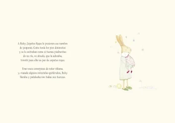Ruby es una liebre blanca que vive con su abuela Babushka Galushka en una coqueta caravana en medio del campo. Cuando era pequeña, su abuela tejió unos zapatos rojos para que sus pequeños pies se mantuvieran calientes y, desde entonces, siempre ha calzado zapatos de ese color.